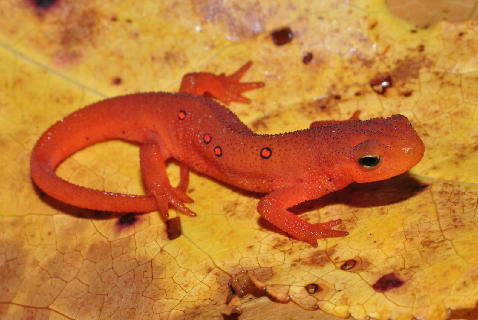 Les efts aux couleurs vives évitent la prédation des oiseaux, car les couleurs rouge et orange signalent qu'ils sont toxiques.