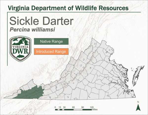 En Virginia, le dard-sickle est originaire des rivières Holston et Clinch, dans le bassin supérieur du Tennessee.