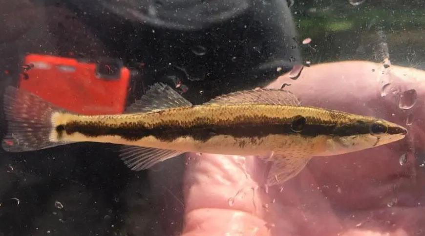 Les biologistes spécialisés dans la pêche utilisent un petit aquarium pour observer en toute sécurité un dard-sickle. Photo prise par l'©, Université du Tennessee - Institut d'agriculture