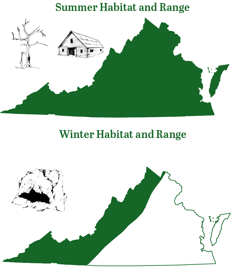 La chauve-souris tricolore est présente dans tout l'État pendant les mois les plus chauds, mais elle hiberne dans les grottes et les abris rocheux des montagnes pendant l'hiver.
