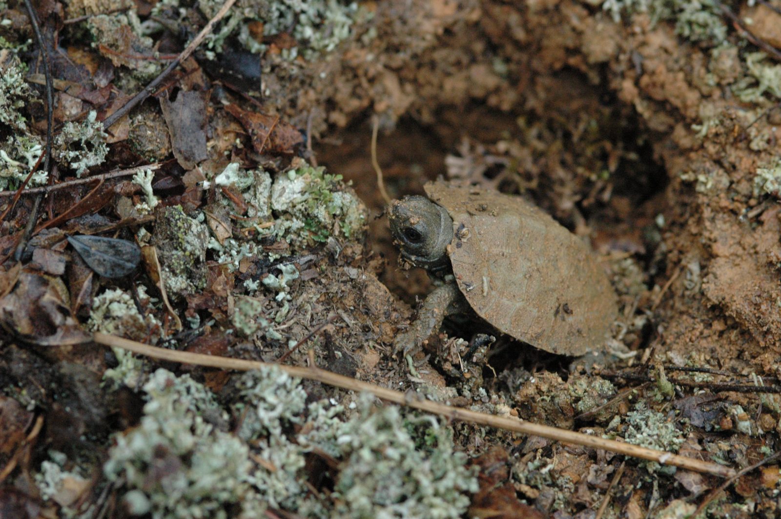 Une tortue des bois en train d'éclore. Photo de J.D. Kleopfer/ DWR.