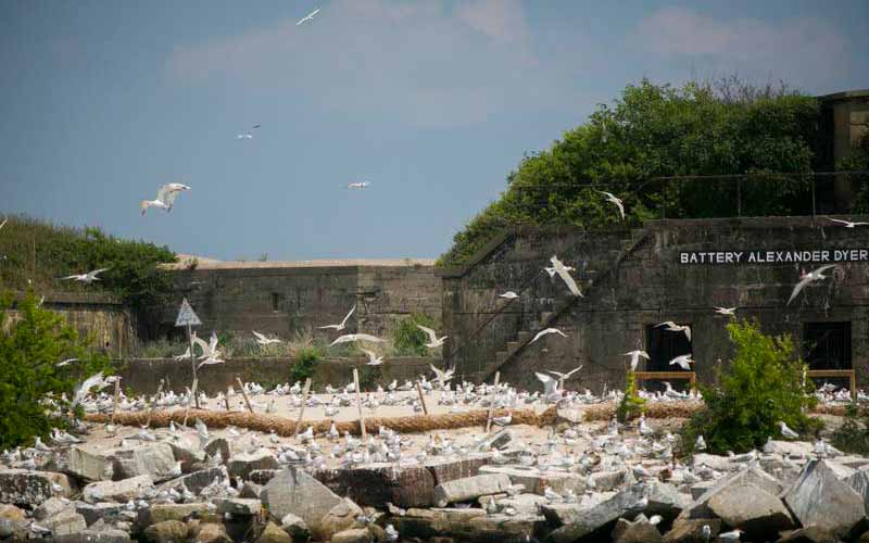 Une importante colonie d'oiseaux de mer se sent chez elle dans une installation militaire désaffectée datant de la guerre de Sécession sur l'île du Sud de la HRBT