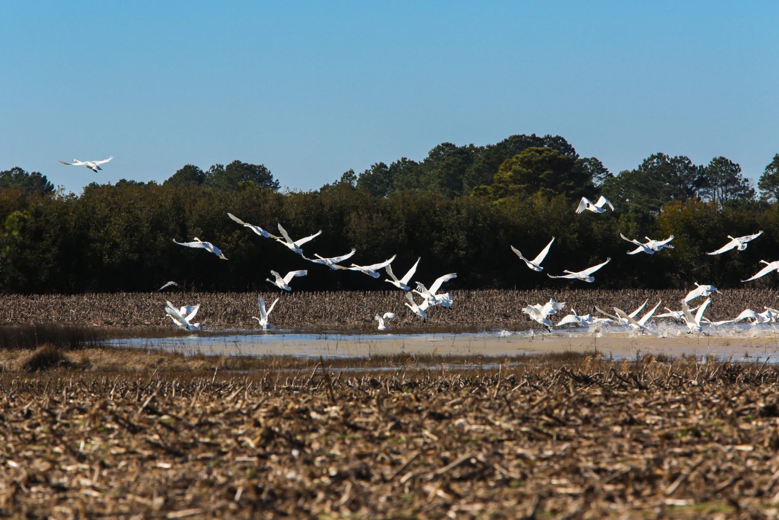 La chasse au fusil sur le Hog Island Tract n'est autorisée que pour le chevreuil et le gibier d'eau, sur une base strictement contrôlée. Les caches construites par le département accueillent trois chasseurs chacune. Les demandes de chasse au cerf et au gibier d'eau peuvent être effectuées par le biais du système de quotas de chasse de l 'agence. La chasse sur le Carlisle Tract est ouverte au grand public dans le cadre de la réglementation générale ou de l'affichage. Ici, il est possible de capturer des cerfs, des colombes, des cailles, des écureuils, des lapins et des dindes.