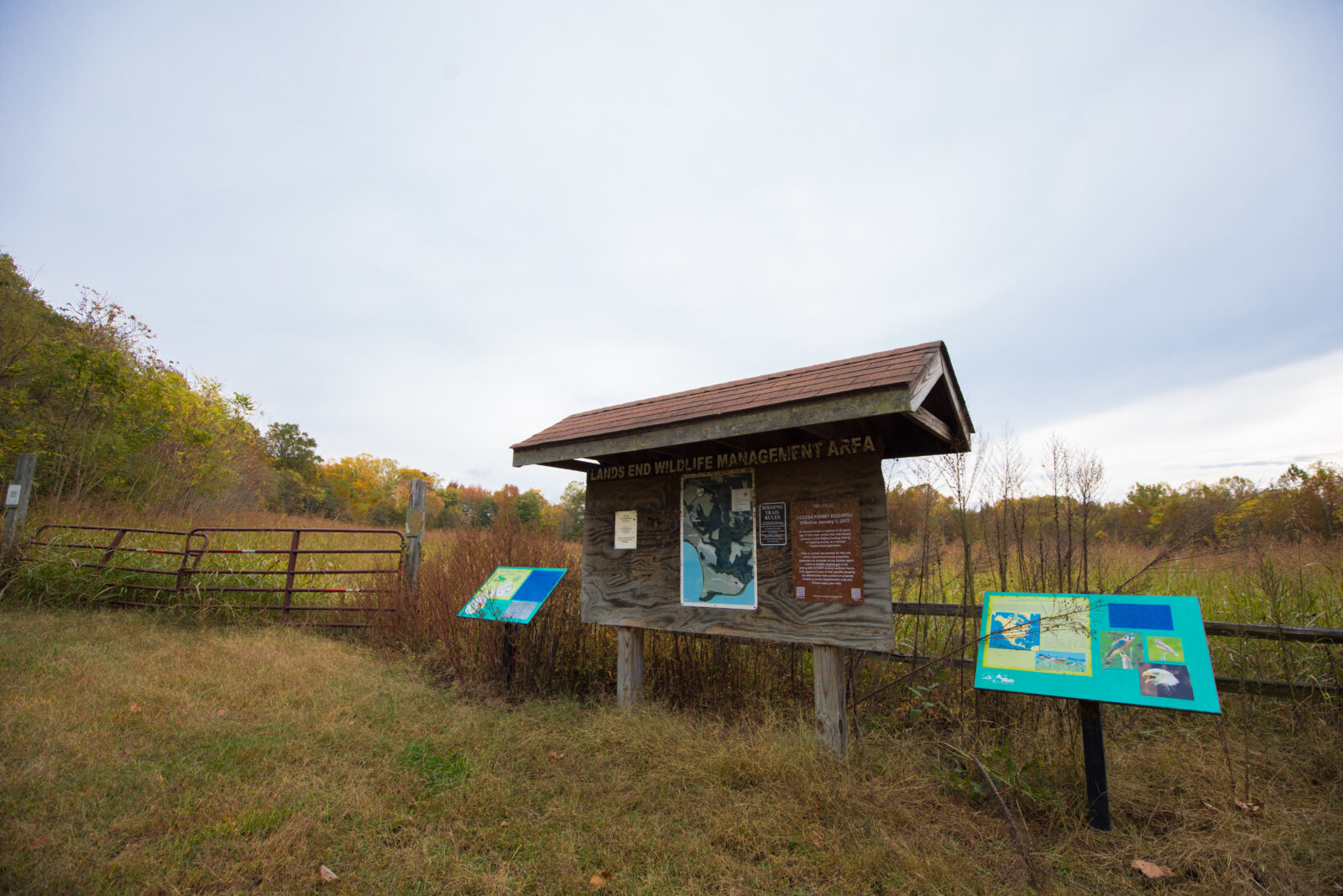 La Land's End Wildlife Management Area (WMA), d'une superficie de 462 acres, a été créée en 1966 et agrandie en 1970. Il s'agit de deux parcelles, la parcelle de Salem Church ( 50 ) et la parcelle de Land's End ( 412 ), situées dans le sud-est du comté de King George. L'AMM de Land's End est un mélange de terres agricoles ouvertes, de bois et de zones humides. Elle est bordée de deux côtés par la rivière Rappahannock et d'un côté par Jett's Creek. En raison des restrictions imposées par les actes de propriété, la Land's End WMA a été gérée principalement comme un refuge pour les oiseaux d'eau migrateurs. Chaque hiver, les bernaches du Canada, qui nichent à l'articulation, sont attirées par milliers pour se nourrir dans les abondants champs de maïs, de milo et de blé d'hiver et pour se reposer dans la baie voisine de Nanzattico. Le pygargue à tête blanche, le cerf, la dinde et les oiseaux chanteurs sont également fréquemment observés sur la Land's End WMA. L'objectif est de promouvoir les possibilités d'observation de la faune et de la flore dans l'est de la Virginie. Des recherches sur la gestion de l'habitat des oiseaux d'eau et de la faune sauvage sont également menées sur la propriété.