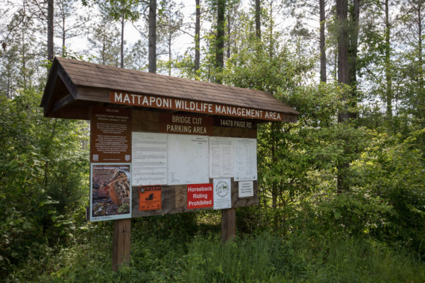 La Mattaponi WMA est nichée dans le coin nord-ouest de la plaine côtière supérieure, située à 1.3 miles à l'ouest au nord-ouest de la ville de Bowling Green. La propriété est une étendue contiguë de terrains plats ou légèrement vallonnés, avec quelques pentes un peu raides, et est considérée comme atypique par rapport à la topographie environnante. L'aire de gestion des forêts est très diversifiée en termes de communautés naturelles. La diversité des habitats et de la topographie de cette WMA en fait un excellent endroit pour pratiquer des activités liées à la faune et à la pêche. Le règlement de la Mattaponi diffère du règlement général des WMA, veuillez donc consulter le règlement des WMA sur cette page.